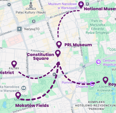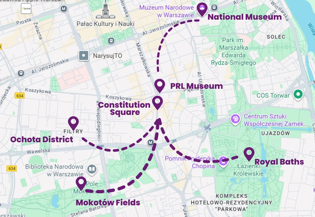 Start your Warsaw adventure with a scenic walk through the city's most iconic neighborhoods. This route is fully walkable and packed with photo opportunities, so wear comfortable shoes and bring a water bottle.